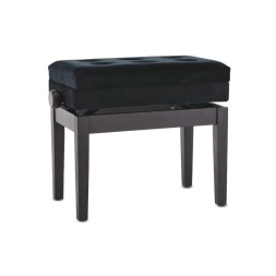 Piano bench with music compartment Solid wood Feet attached with high strength M10 screw dowels Breaking load over 2 tonnes Velour seat cover in black Seat area 57 x 35 cm Compartment size 29 x 50.5 cm, Height 4 cm Easy height adjustment due to precise scissor mechanism Height 52 - 61 cm Available in 5 different colours Rosewood matt VE2