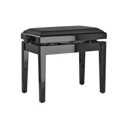 Удобная регулировка высоты с помощью двух высокоэффективных газовых пружин Массив дерева Ножки крепятся к раме высокопрочными резьбовыми пробками M10 Bruchlast über 2 Tonnen Виниловое покрытие сиденья Площадь сиденья 52x30 см Рабочий диапазон 40-200 кг Высота 50-61 см Доступно в 3 различных цветах Черный глянцевый Сиденье черное